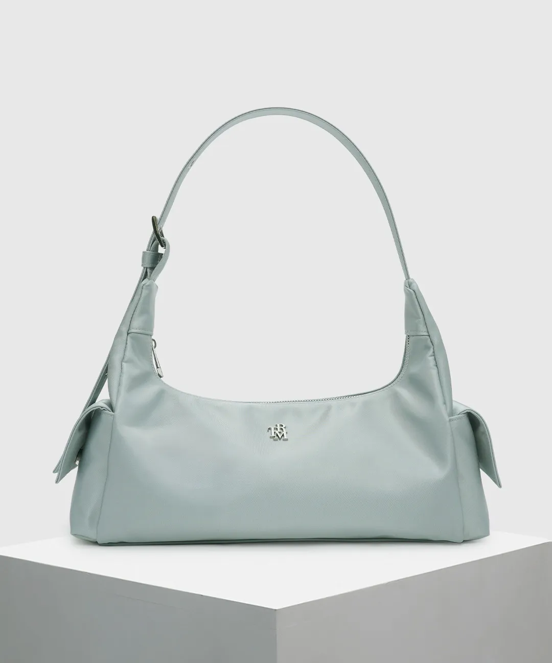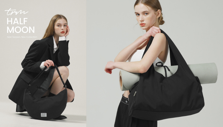 3reminds’ best-selling signature style. Cut from GRS-certified recycled nylon in a clean baguette silhouette, it weighs just 190g (about as light as an iPhone 17 Pro) — comfortable to carry all day. The W27.5 × H16.5 × D7.5cm half-moon flat shape easily holds a long wallet, AirPods, lipstick, and a compact pouch. Worn under the arm, it nails that effortless retro-chic look that’s everywhere in Seoul cafés right now.